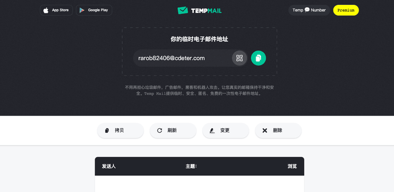 Temp Mail:临时邮箱、匿名电子邮件 第1资源网 2023-09-23 22:46 酷站推荐 8030 次阅读 Temp Mail是一个免费临时邮箱,在浏览或者注册某些网站时不想填写自己真实的邮箱时,可以使用这个邮箱,不需要注册就可以使用。获取邮箱温馨提示:此处为隐藏内容,评论回复后方可查看。 本文标签:临时邮箱免费临时邮箱一次性邮箱Temp Mail匿名邮箱 本文链接:http://www.11fx.cn/kuzhan/962.html